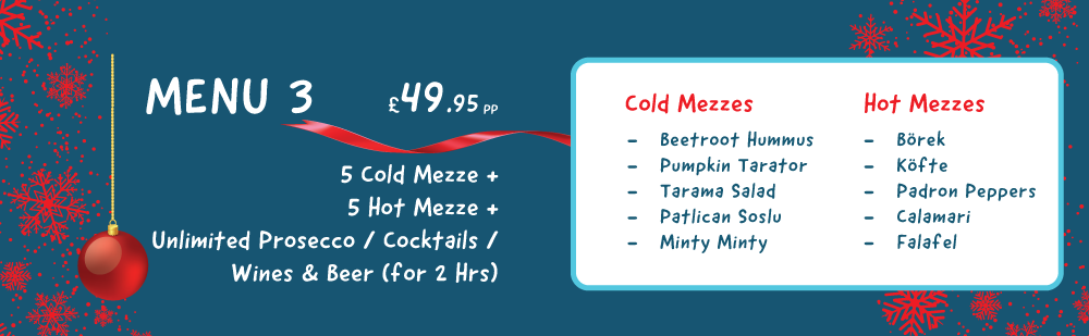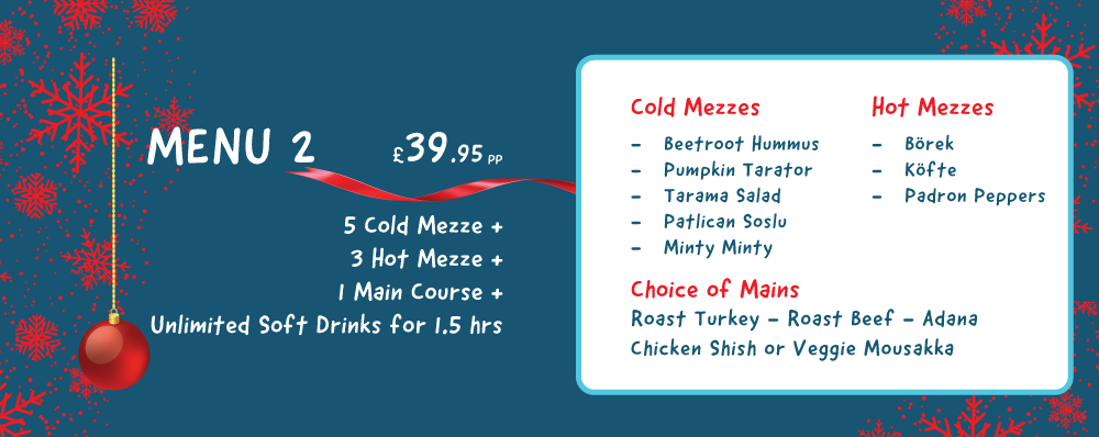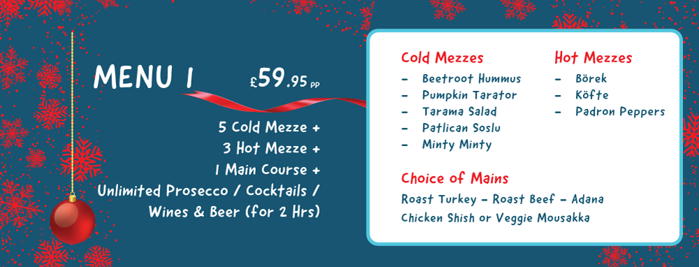 Join us this festive season for an unforgettable Mediterranean Christmas experience. With nearly 30 years of serving Islington, we’re ready to make your Christmas celebration truly special with our authentic charcoal-grilled dishes and warm hospitality.